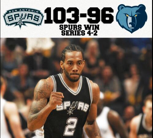 马刺103-96击败灰熊,总比分4-2晋级西部半决赛,下一轮将面对火箭,这是1995年后两队首次在季后赛相遇,火箭也是蒂姆-邓肯季后赛生涯唯一没有碰到的西部球队。双方首场将在北京时间5月2日(下周二)9点30开打。