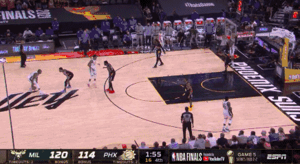 在第一节的这5分09秒的时间里,双方陷入打铁大战,最终雄鹿6-5领先太阳略胜一筹。