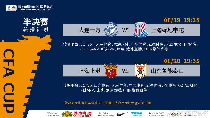 今晚19点35分,足协杯半决赛,上海上港主场对阵山东鲁能,本场比赛为单回合对决,胜者直接晋级决赛,与上海申花会师。