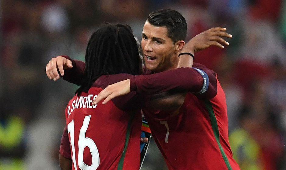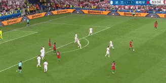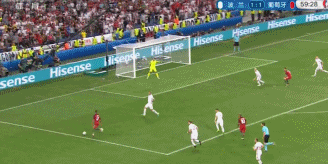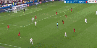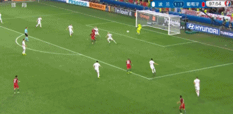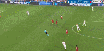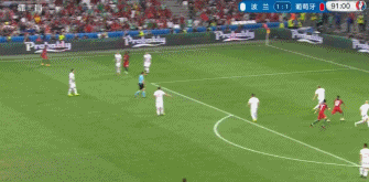 第33分钟,卡瓦略直塞,桑切斯右路跟禁区内的纳尼配合后带球内切,禁区外围直接左脚打门入网,法比安斯基扑救不及,葡萄牙1-1将比分扳平!