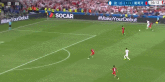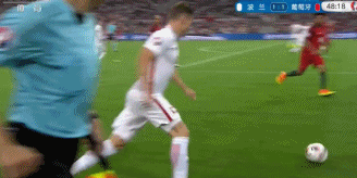 第16分钟,葡萄牙获得禁区前中路任意球,C罗直接打门被人墙挡出。波兰队打动反击,莱万在禁区前拿球顺势过掉佩佩,随后一脚低射,角度太小,被守门员保住。
