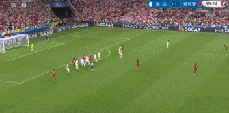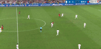 第92分钟,埃利塞乌45度传中,禁区里C罗甩开防守,在小禁区里射门,结果这球被他停在了身后!波兰队躲过一劫。