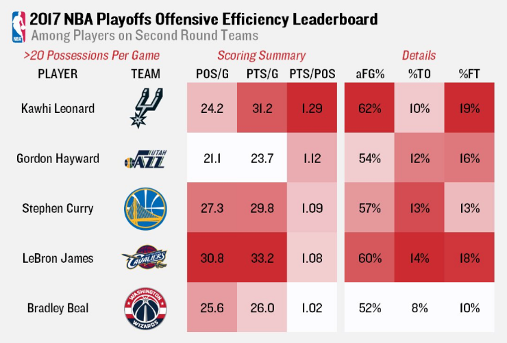 火箭这场防守也非常不错,上半场他们限制马刺每回合只能得到0.80分,而马刺常规赛这个数据是排名联盟第八的0.965分,而他们在首轮面对灰熊是每回合的得分是0.995分。火箭防守令人印象深刻还体现在他们在防挡拆的回合里让对手命中率只有18%,定点跳投的命中率则限制到31%。