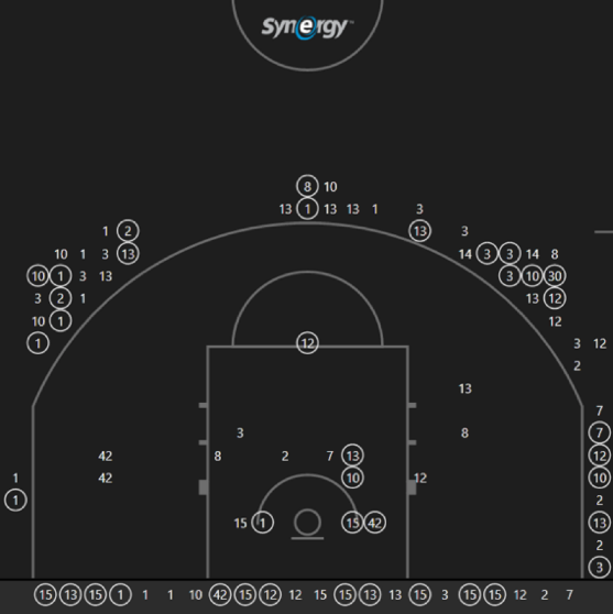 常规赛马刺的定点跳投每回合得分是1.07分,联盟第三,但今天这个数据是0.76,半场进攻的跳投命中率只有27%。火箭在常规赛防守跳投就做得不错,他们每个跳投回合只让对手得到0.927分,联盟第五,但今天他们的防守仍然令人佩服。