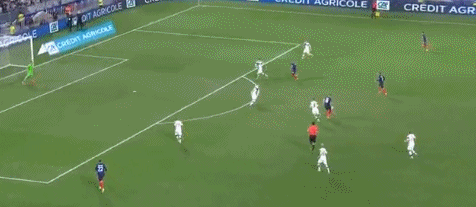 第25分钟,法国队左路造攻势,本泽马禁区线外脚后跟直塞,格列兹曼带球横突晃开角度,左脚外脚背推射打入远角,法国队1-0领先!