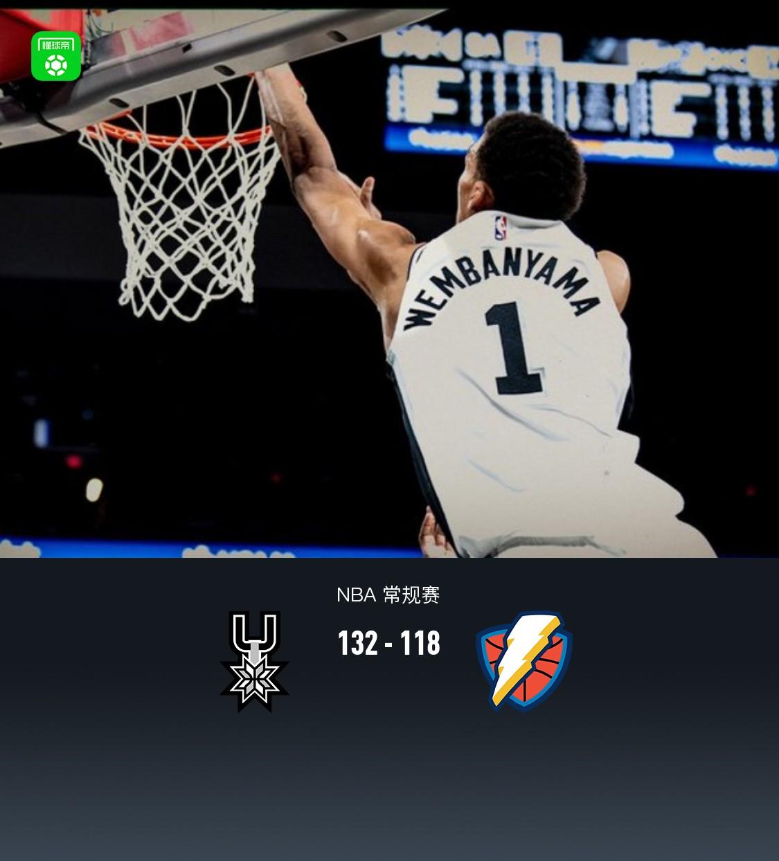 第四节马刺索汉拿下11分,雷霆杰伦-威廉姆斯拿下9分,最终马刺132-118战胜雷霆