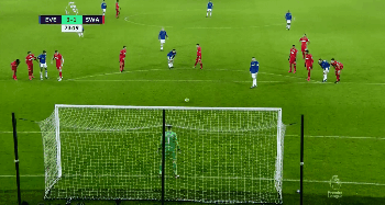 第72分钟,奥尔森禁区线上犯规,埃弗顿再获点球。