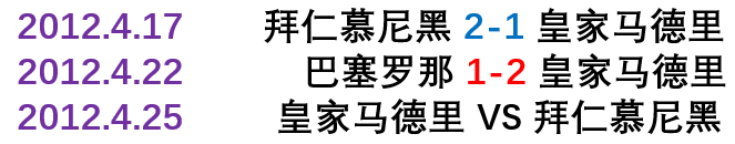 双方第一回合的较量在2012年的4月17日,拜仁坐镇安联球场2-1小胜皇马,拜仁总比分领先一球,但是皇马手握一个客场进球优势,二者不分伯仲,这个比分让第二回合的走势与结果充满了悬念。然而,在这场欧冠半决赛第二回合之前,两家豪门的境遇产生了巨大的改变。