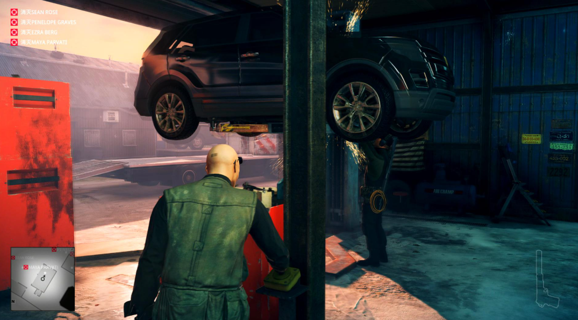 目标人物在修车,此时我们拉下千斤顶,制造意外