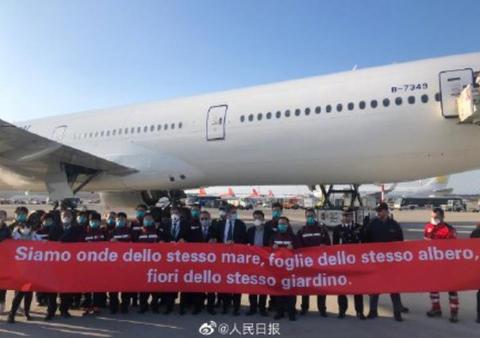 【海外网3月19日|战疫全时区】经过约12小时的飞行,第二批中国赴意大利抗疫医疗专家组一行13人和大批物资在北京时间18日晚飞抵意大利米兰。这是继3月12日中国政府向意大利派遣第一批抗疫医疗专家组后的第二批中国赴意抗疫医疗专家组。相关新闻在推特上引发热议,除了不少意大利民众表示感谢,其他国家的网友也纷纷向中国医疗专家致敬,称赞他们是英雄。