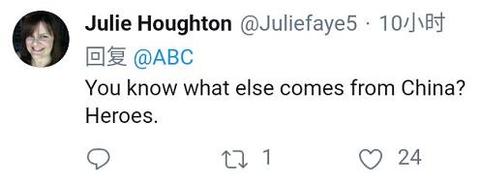 在这条新闻的留言区,点赞数最高的评论来自一位叫朱莉· 霍顿的女性。她表示:“你知道中国还带来了什么吗?是英雄。”另一位名为莫加勒网友附和道:“英雄也是中国制造。”此外,一位头像是英国国旗的网友在相关新闻下留言称“向中国致敬”,另一位网友也表示“对中国致以深深的敬意”。