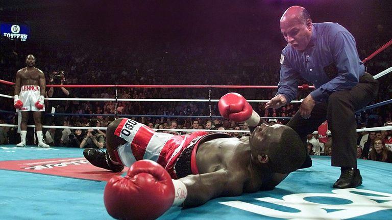 渐渐的,伦诺克斯·刘易斯移动已经不那么灵活了,打出的拳头也看不出有什么力量。哈西姆·拉曼利用这个机会一点点靠近了伦诺克斯·刘易斯。