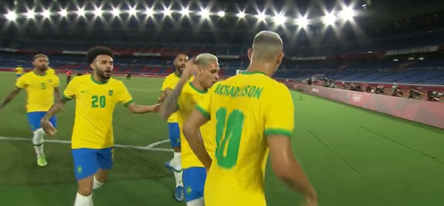 易边再战,德国在第57分钟由阿米利扳回一球,不过仅仅6分钟后,队长阿诺尔德吃到第二张黄牌被罚下,德国少一人作战,巴西队多次错失良机,德国在第83分钟再进一球,追到2-3,保利尼奥在补时阶段锁定胜局,最终巴西4-2战胜德国,取得奥运会开门红。
