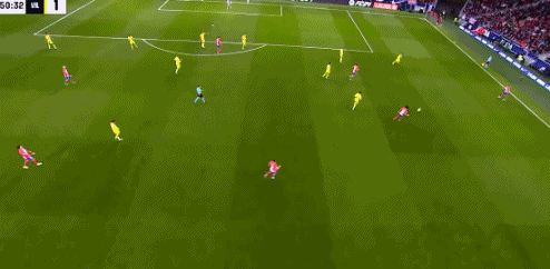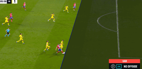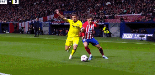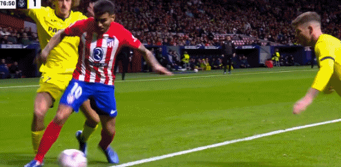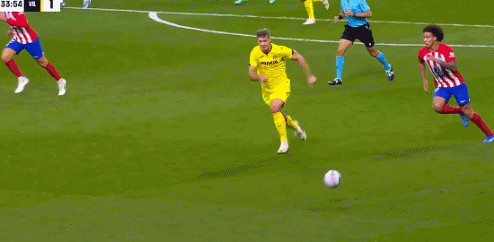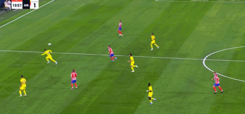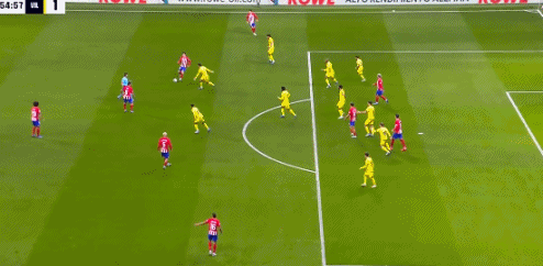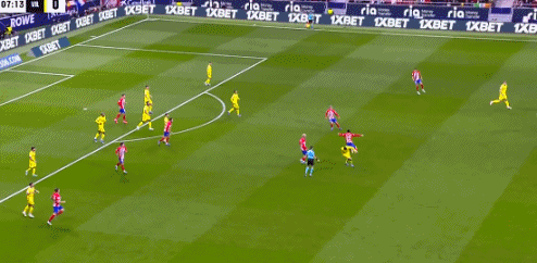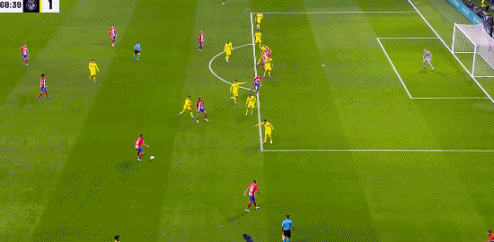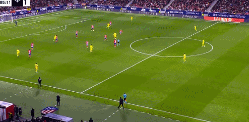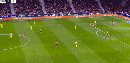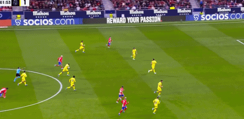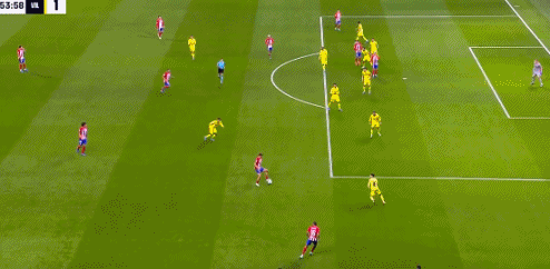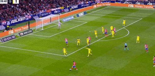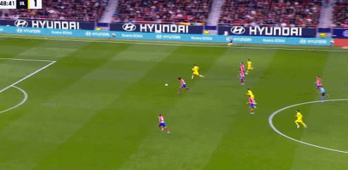 第45+1分钟,格列兹曼下底横传,维特塞尔包抄破门!马竞1-1比利亚雷亚尔