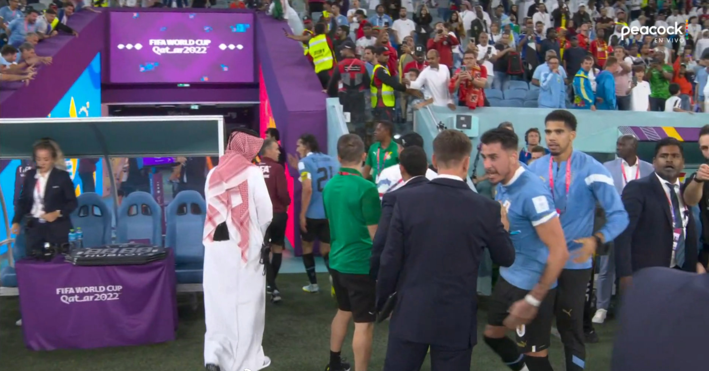 12月3日消息,北京时间12月3日凌晨,2022年世界杯小组赛H组第3轮,韩国以2-1逆转葡萄牙,当乌拉圭最终仅以2-0击败加纳之后,韩国队惊险地以进球数的微弱优势位列小组第二晋级16强。赛后,乌拉圭队长卡瓦尼带着队员们围攻了德国主裁判,认为他最后时刻漏判了关键点球!