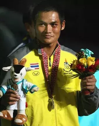 那是一场5场3胜制的比赛,打完前4场,中泰双方战成2比2平,最后一场75kg级的较量,泰方派出的是“膝王” 西提戳-陆帕巴,而代表中国出战的,则是前一年刚刚获得散打王头衔的宝力高。