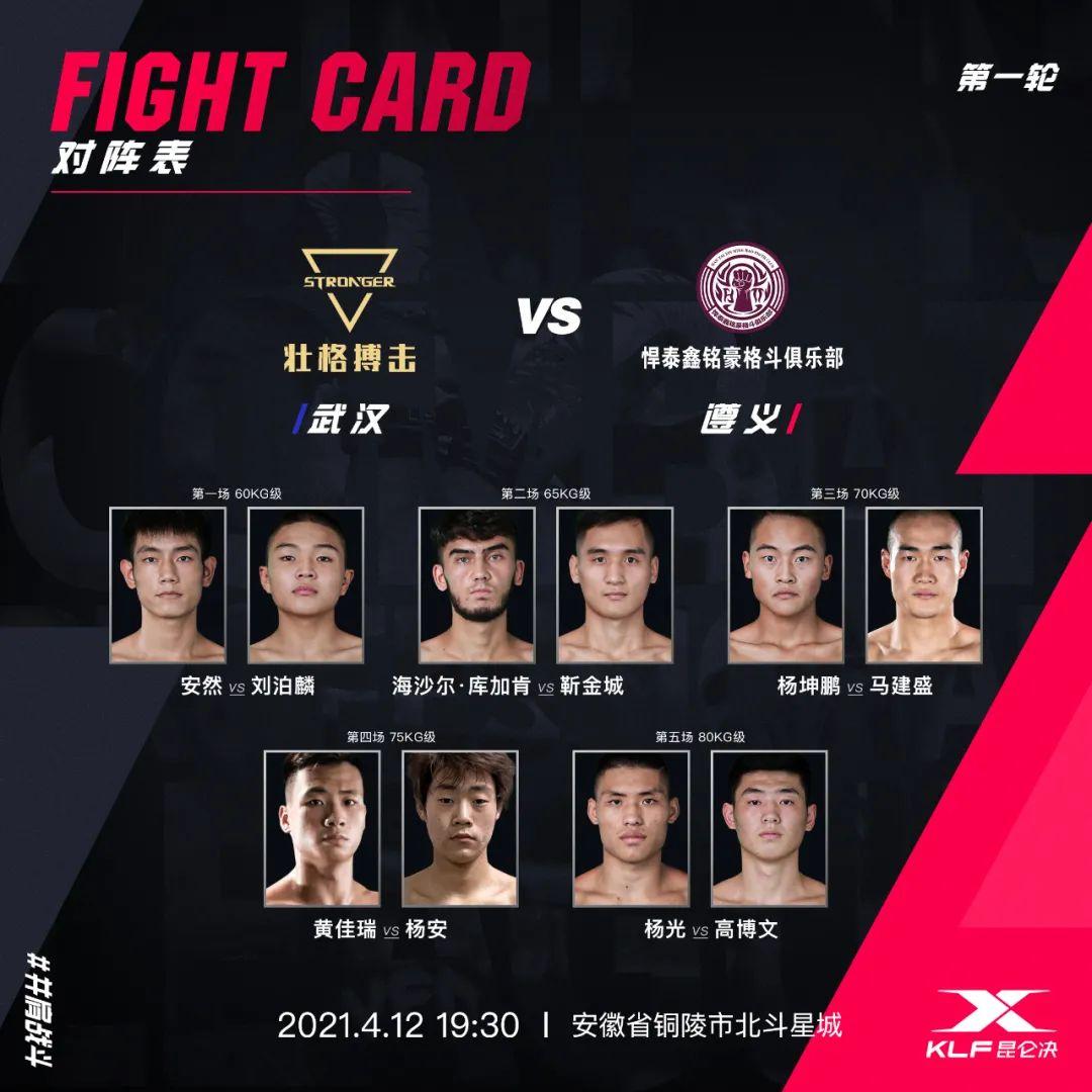4月12日 昆仑决格斗俱乐部职业联赛对阵表: