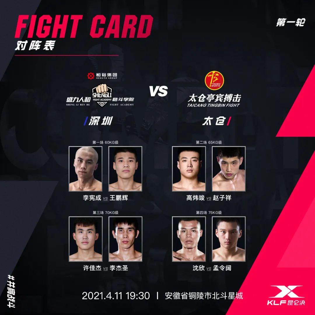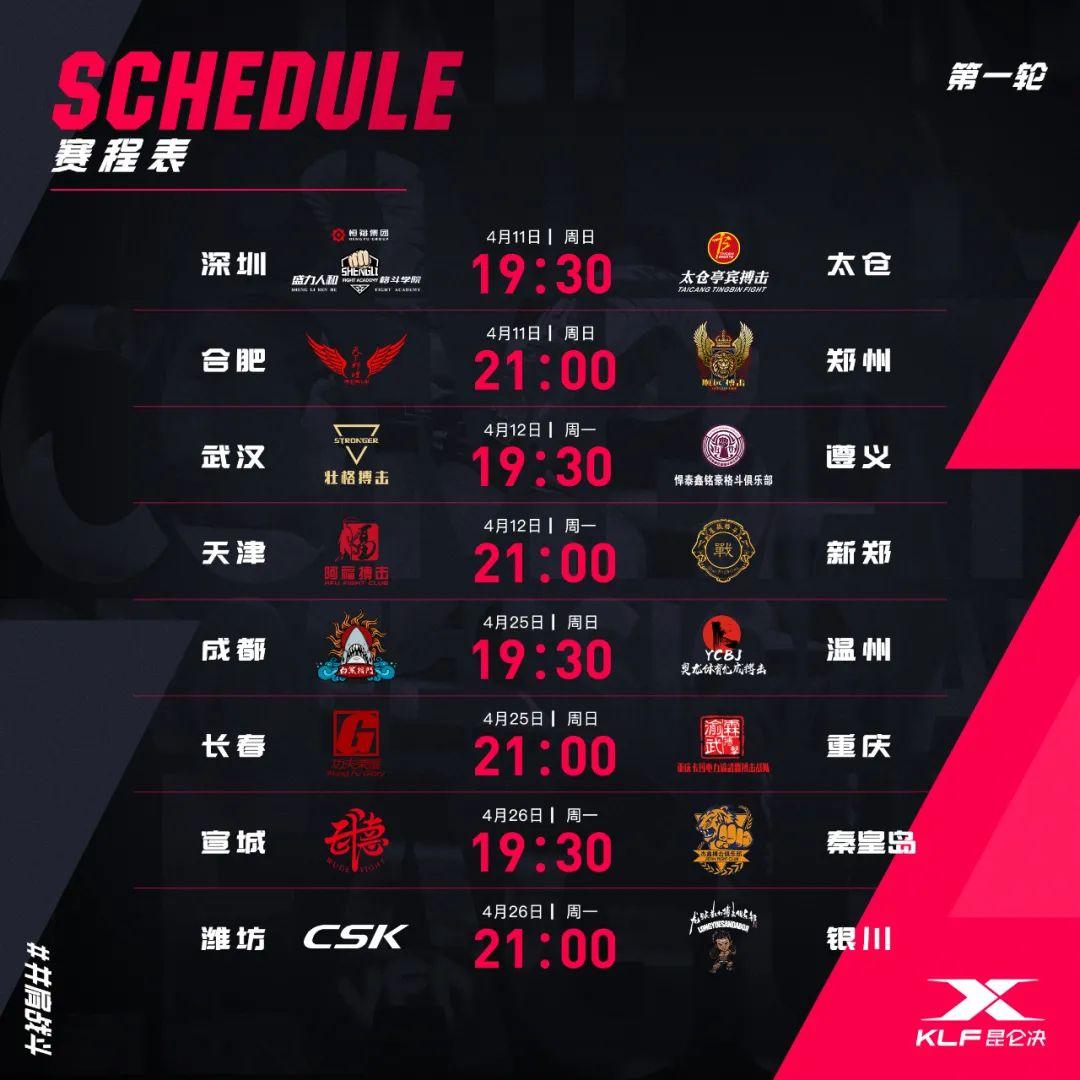 4月11日 昆仑决格斗俱乐部职业联赛对阵表:
