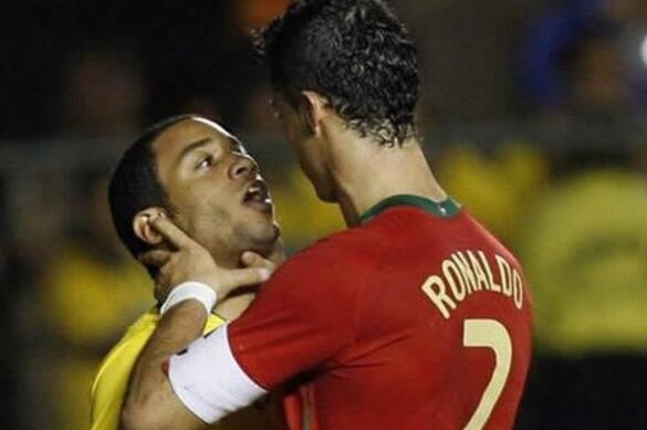 但是现在的好基友,在第一碰面时的情景却是剑拔弩张的。2008年,在一场国际友谊赛中,比赛进入第81分钟,此时葡萄牙2-5落后于巴西,面对巴西队拖延时间的策略,两队爆发冲突,C罗甚至还掐上了马塞洛的脖子。
