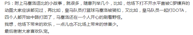 能攻能守,能卖萌搞怪,还能一起DOTA打怪(不知道真的假的…),只能说…请大家一起好好爱护他。毕竟再找不到第二个像马塞洛这样的队宠了。