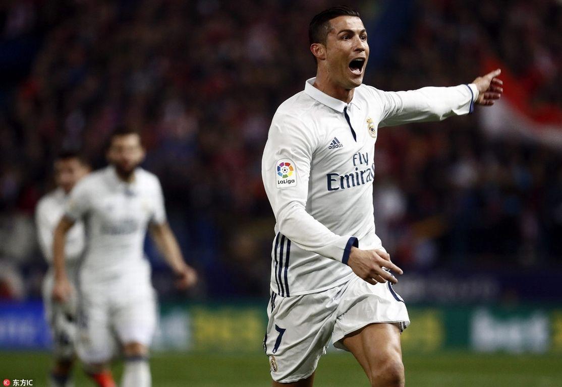 马德里德比第22分钟,皇马获得前场任意球,C罗自然当仁不让的主罚。罚出去的足球在击中了人墙之后,折射破门,皇马在客场取得了领先。