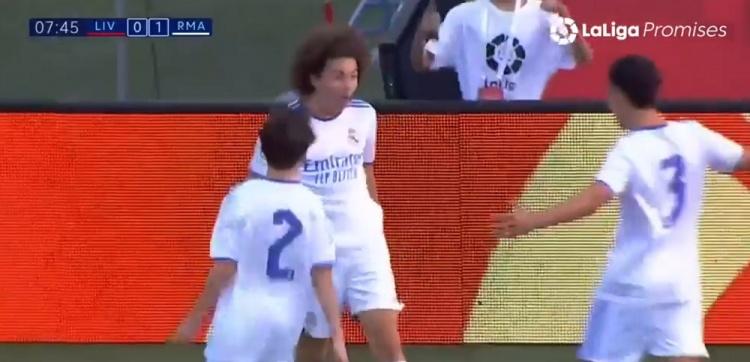 直播吧3月26日讯 在皇马InfantilB队与同年龄段利物浦队的比赛中,马塞洛的大儿子恩佐梅开二度。