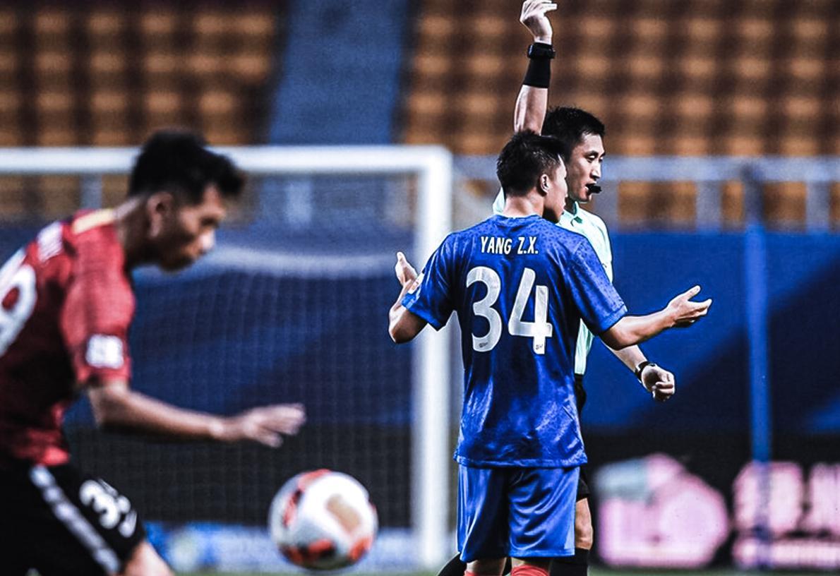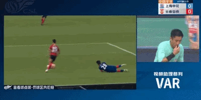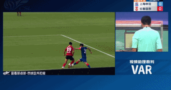 第15分钟,曹赟定禁区内摆脱毛开宇后被后者放倒,主裁判马宁判罚点球,但马宁在观看VAR之后取消了点球判罚,长春亚泰躲过一劫。