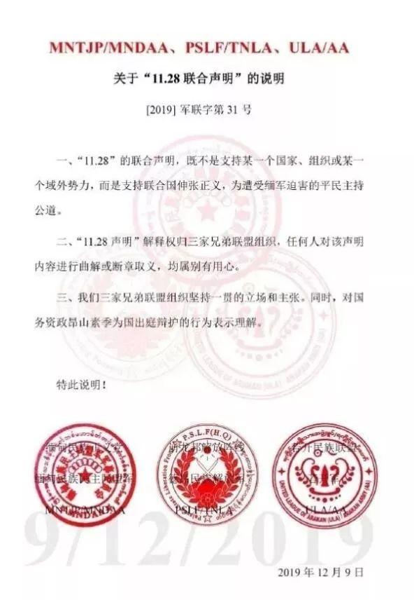 之后,三支民武又发声明,对11月28日的声明做了补充说明。