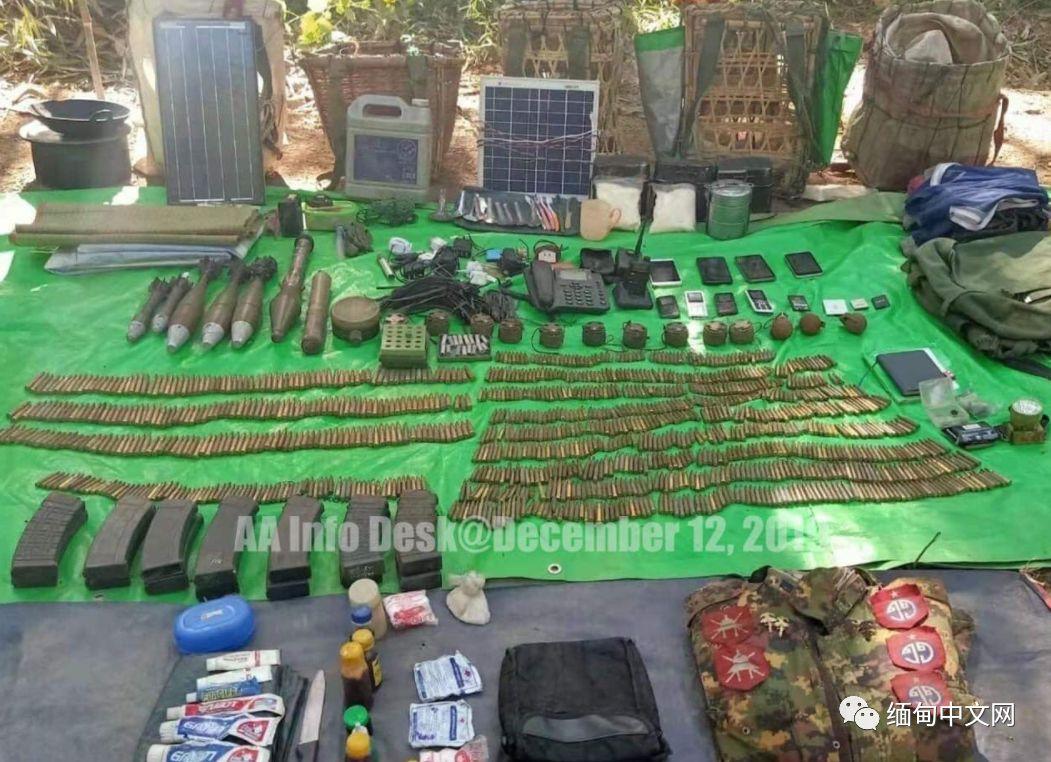 【缅甸中文网讯】若开军(AA)发布消息称,12月11日,若开军攻占了军方位于敏比亚镇敏普山的一个据点。若开军在清理战场时,发现了军方士兵遗体以及军方士兵遗落的枪支弹药,枪支弹药中包括一台60mm迫击炮。若开军发布的信息中,还附带了缴获的武器弹药的照片。