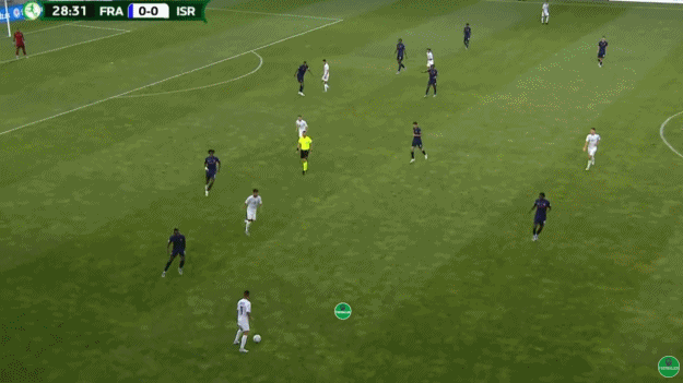 夺冠大热门法国轰然倒下,可能是有些轻敌,法国队竟然在比赛中并不占优,以色列队在第29分钟取得领先,左边锋卢加西(Ariel Lugasi)过顶挑传撕破对方防线,前腰格洛克(Oscar Gloukh)左肋切入,低平球横扫门前,中锋埃布拉希姆(Ahmad Ebraheim)接应铲射,虽然没有碰到皮球,但对方左边后卫、效力于勒阿弗尔的图雷(Souleymane Isaak Touré)将球挡进自家大门,1比0。