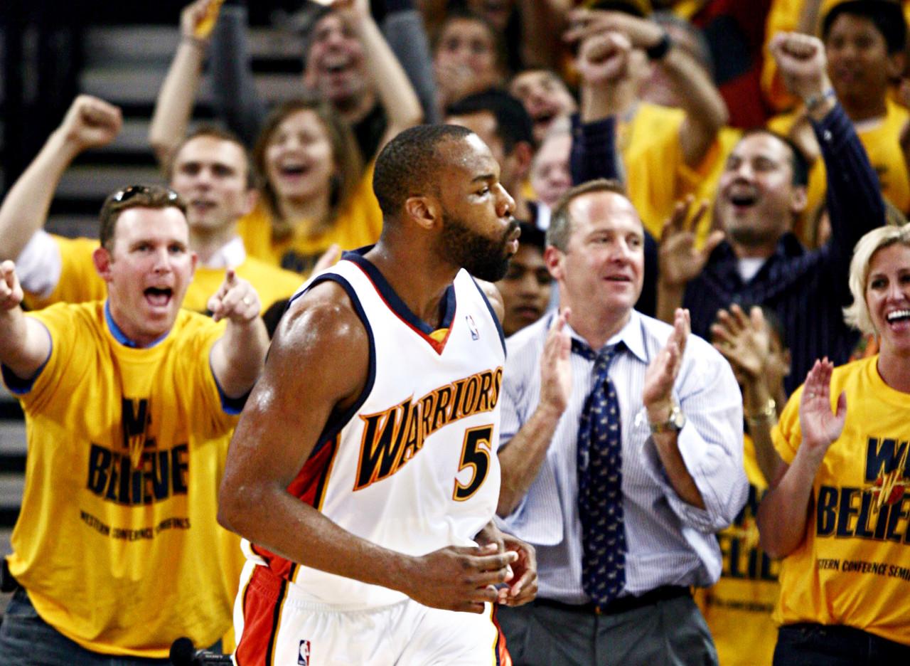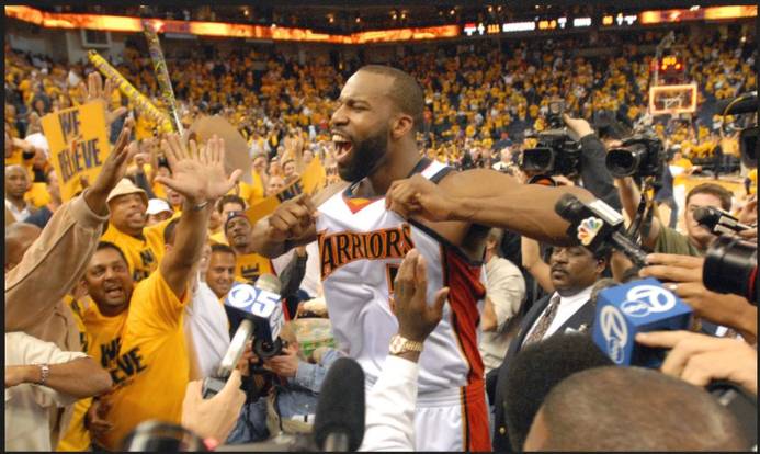 直播吧5月3日讯 13年前的今天,也就是2007年5月3日,由巴朗-戴维斯领衔的金州勇士以西部八号种子的身份,以4-2的大比分淘汰了西部头号种子达拉斯小牛队(现达拉斯独行侠队),完成了“黑八”奇迹。