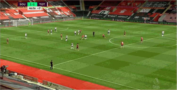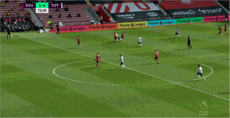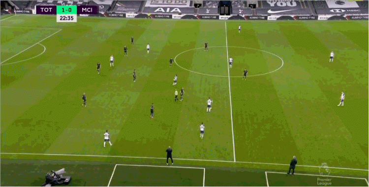 恩东贝莱策划进攻,凯恩与孙兴慜在中路形成“楔形攻势”。