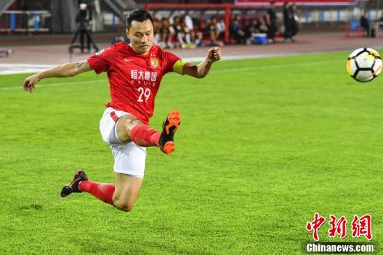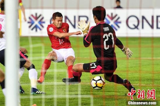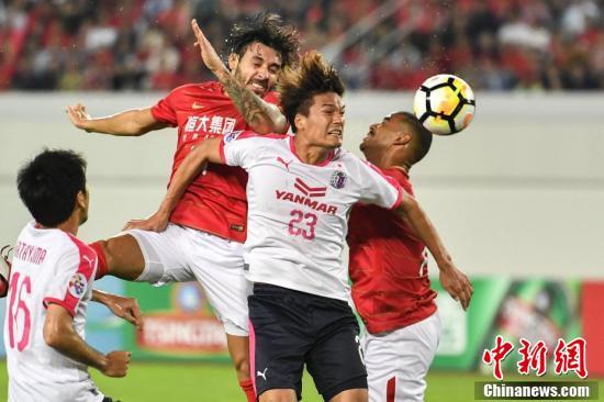 广州恒大球员高拉特与对手争抢头球。(中新社记者 陈骥旻 摄)