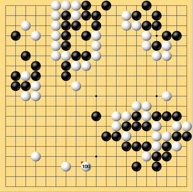 图五(实战图)李世石刚刚弈出一串缓手,导致局面优劣逆转,但阿法狗的白100也让高手们费解,这难道是此局面下最佳一手吗?这真的是八台最先进、最大功率计算机算出来的“只此一手”?高手们却对此有不同见解。