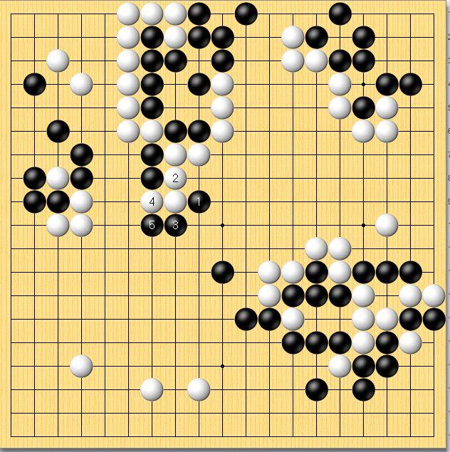图一(实战图)AlphaGo的白2遭到高手们的批评,认为此时应该在4位虎,与下边白棋相呼应。实战黑棋就地安定,白棋配置并不太理想。