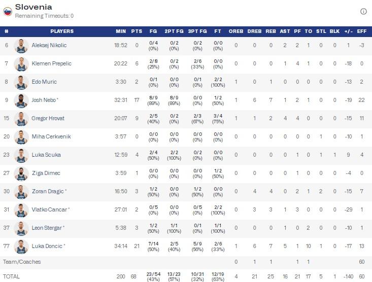 小组赛首战,斯洛文尼亚92-108不敌克罗地亚,东契奇23投仅8中,得到26分11篮板10助攻。之后克罗地亚又爆冷以86-90不敌新西兰。