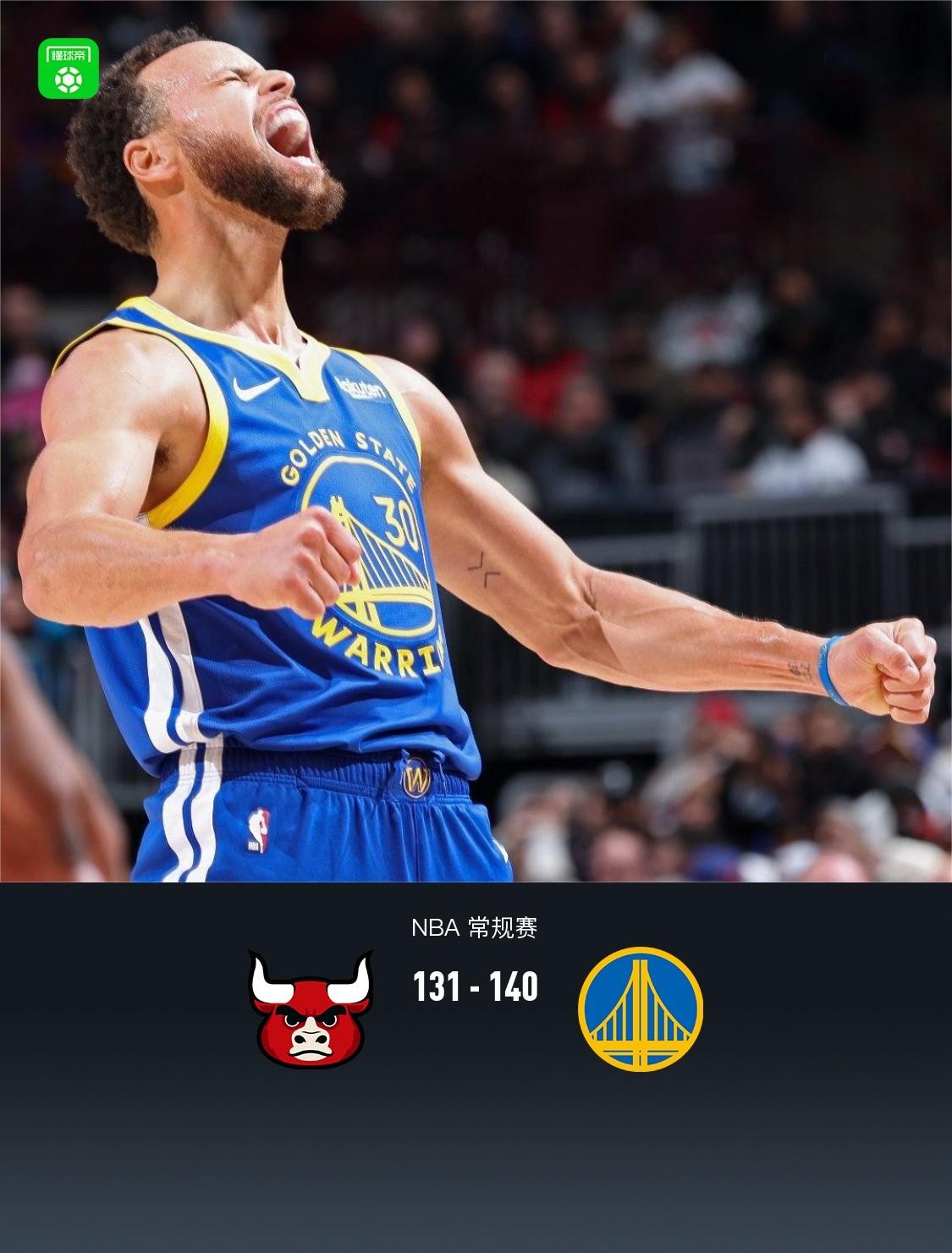 第四节公牛德罗赞拿下12分,勇士库里拿下15分,最终公牛131-140不敌勇士
