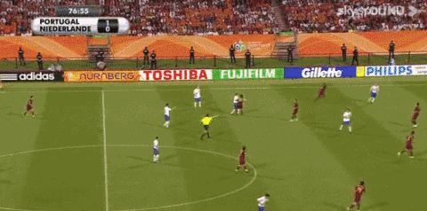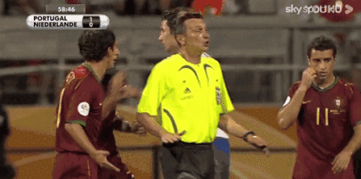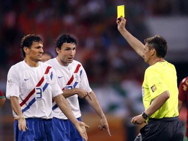 2006年6月26日,世界杯八分之一决赛,葡萄牙VS荷兰,比分最终是1-0,在平淡无奇的比分之下,本场比赛的火爆程度在世界杯历史上都绝无仅有,全场比赛裁判共出示16张黄牌,4人被罚下,下半场两队黄牌数高达11张。再看看得牌球员的名字,菲戈、德科、范布伦特霍斯特、斯内德、范德法特......