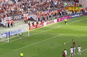 小组赛第二轮,葡萄牙2比0击败伊朗。第79分钟,菲戈带球突入禁区,扣过戈尔莫哈马迪之后被绊倒,裁判判罚点球,菲戈主动把点球的主罚权让给了C罗,C罗罚进后激动得跪在菲戈面前。