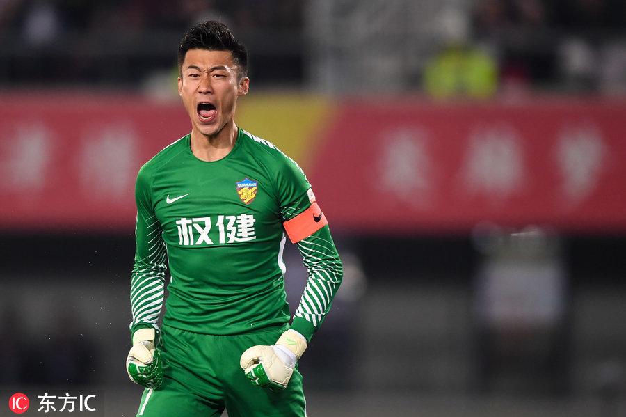 面对黄博文、郜林、金英权的连续门前抽射,张鹭奋力三连扑,力保球门不失