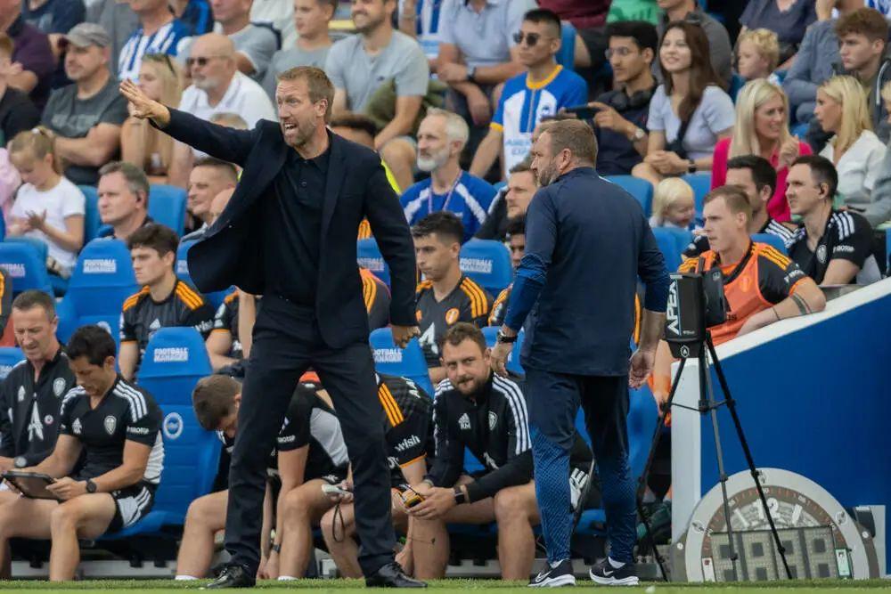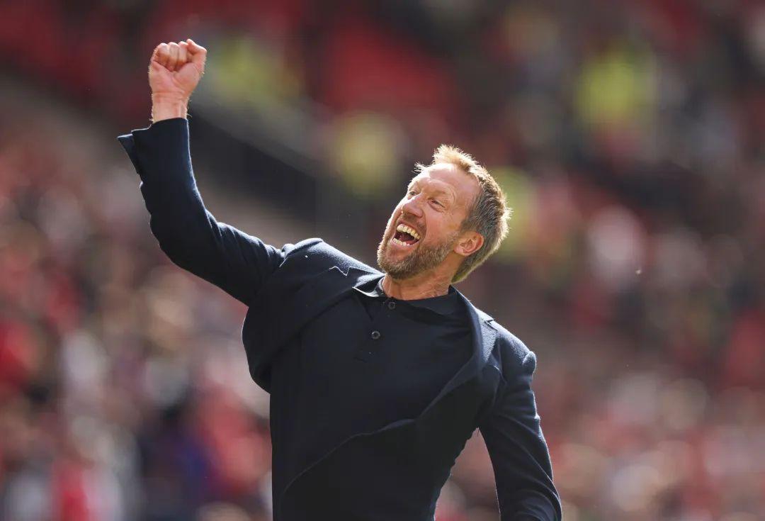 2022-23赛季英超联赛甫一揭幕,便爆出冷门,布赖顿客场2比1击败曼联,令滕哈赫遭遇开门黑。带着3分离开梦剧场前,“海鸥”主帅格雷厄姆·波特朝着客队看台欢欣一片的远征球迷鼓掌致意、挥出一拳,如此庆祝对波特而言已经是罕见场景——这位现年47岁的英格兰教头,从来都是淡定之极,喜怒不形于色。