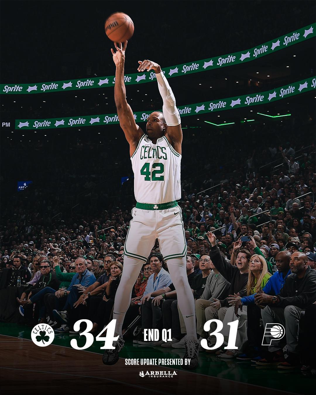 本场比赛,凯尔特人队打出12:0梦幻开局,塔图姆和布朗频繁连线得手,霍福德三分命中。步行者队在哈利伯顿、西亚卡姆的带领下追赶比分。此后,特纳在篮下显示出威慑力,他利用强攻和二次进攻接连取分。随着托平中投命中,步行者队将分差缩小到3分。