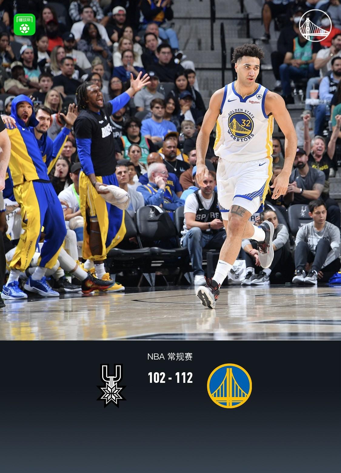 第四节马刺文班亚马拿下12分,勇士库明加拿下8分,最终马刺102-112不敌勇士