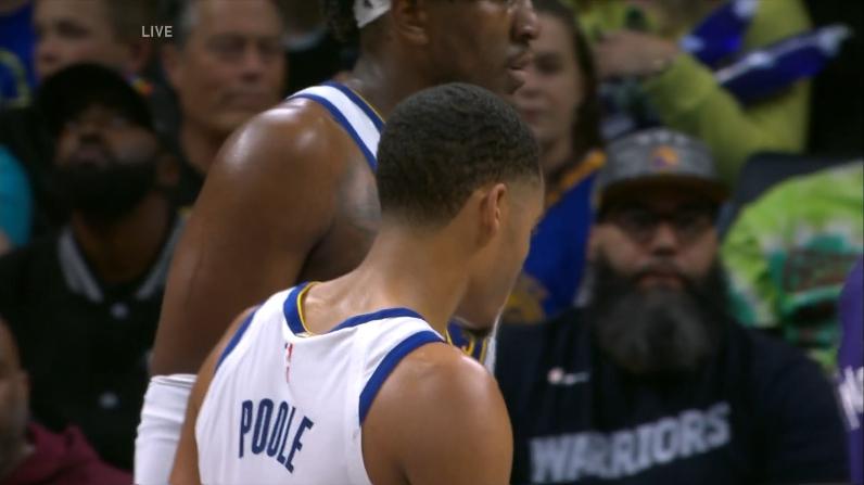 第三节,库里贡献12分,普尔贡献7分,克莱贡献5分。