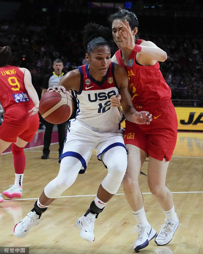 黄思静(左)贴防美国球员。