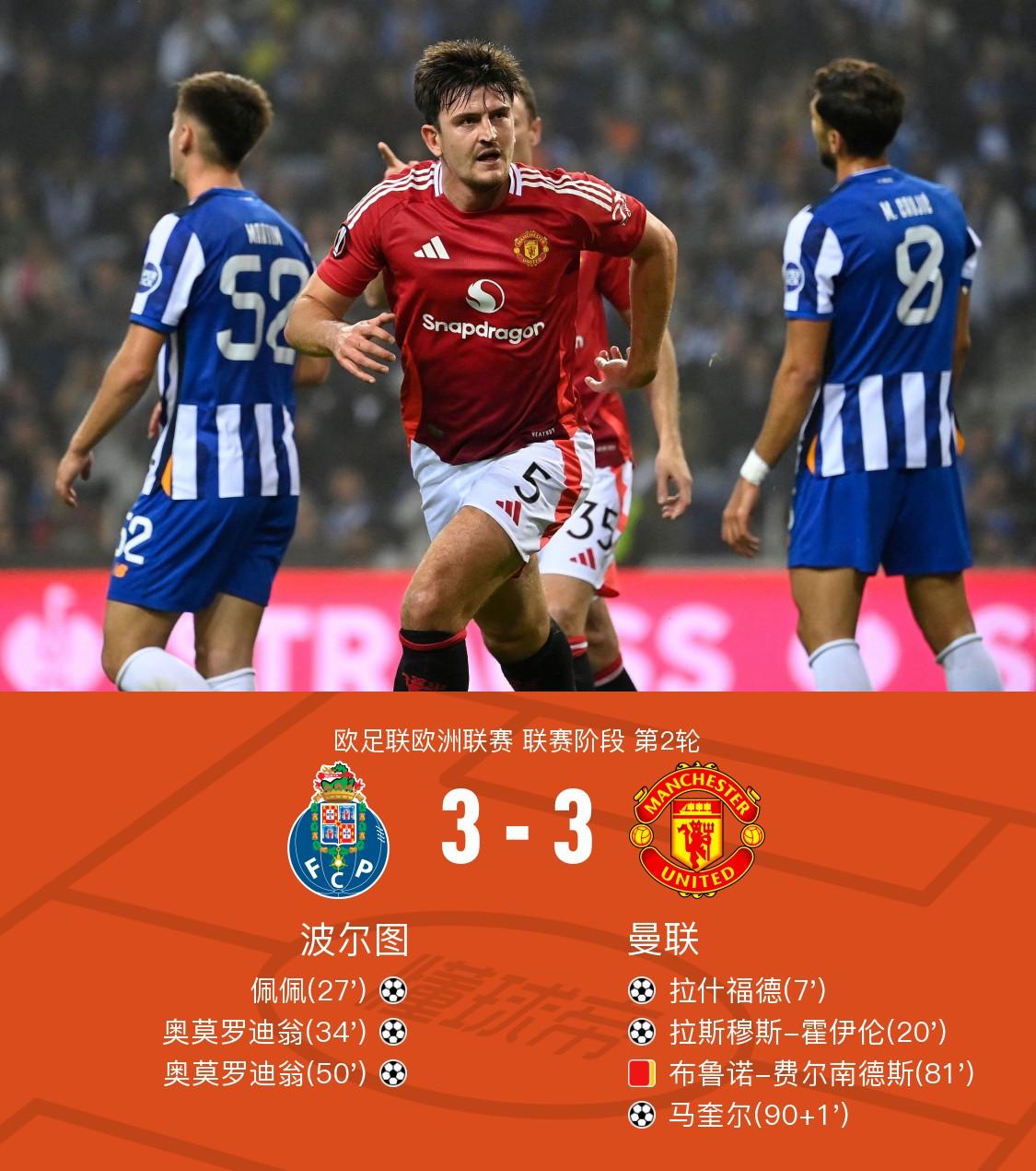在欧足联欧洲联赛的较量中,波尔图与曼联展开了一场激烈的对决。上半场拉什福德低射破门,随后拉什福德助攻霍伊伦扩大比分,佩佩头球扳平,奥莫罗迪翁头球扳平,下半场奥莫罗迪翁梅开二度反超,马奎尔头球绝平,将比分定格在3-3。最终,双方在这场进球大战中握手言和,各取一分。