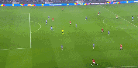 第46分钟,曼联半场换人,加纳乔上场换下拉什福德