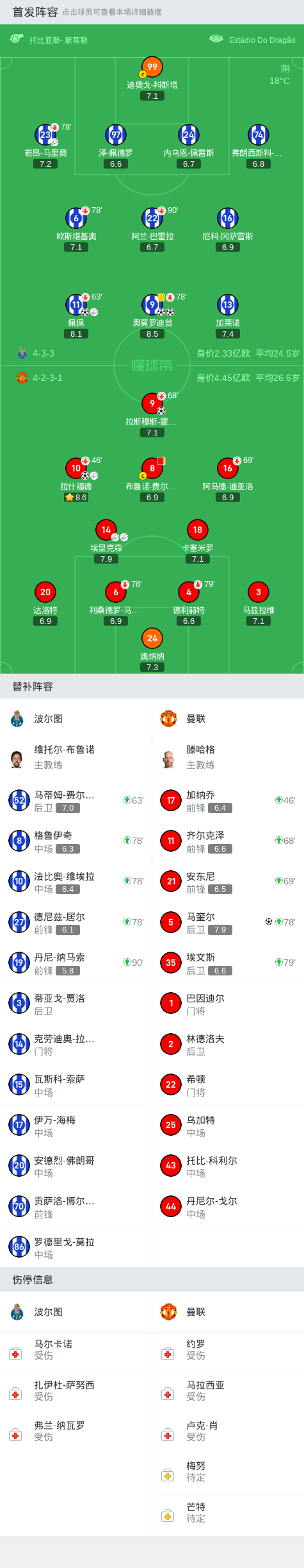 这是一场疯狂的比赛,直到3-2,从那时起,波尔图打得更有头脑。曼联在被减员到十人后才再次逼近波尔图……