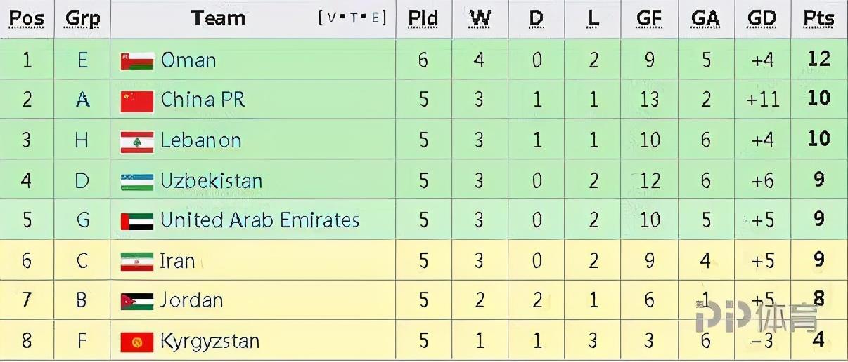 而随着黎巴嫩队1比2输给韩国队,他们也完成了全部40强比赛,积分依然是10分,净胜球减少一个,定格为3个。这也就意味着,国足在少赛一场的情况下,积分和他们相同,净胜球比他们多8个。
