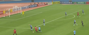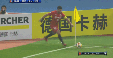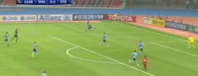 比赛第13分钟,张卫面对悉尼FC后卫扣球后,小角度射门,但被对方门将挡出底线。